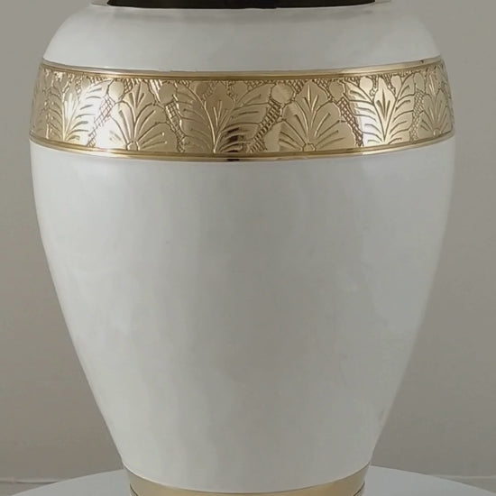 Experience the perfect blend of elegance and dignity with the Embassy Gold and White Urn, a magnificent gold urn for ashes that serves as a lasting tribute to your loved one.